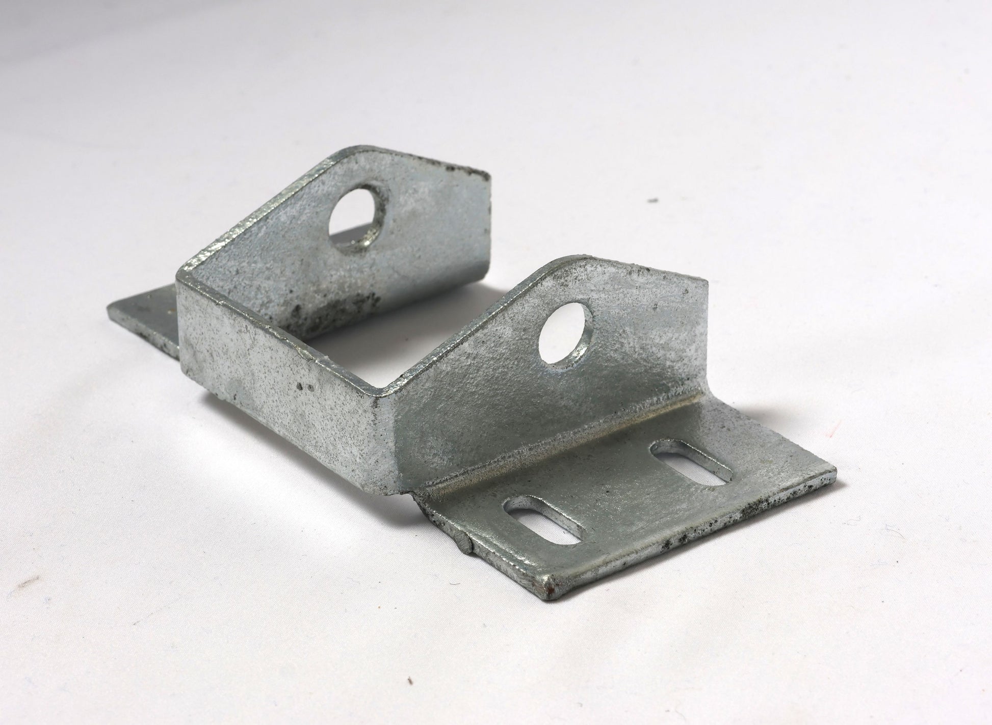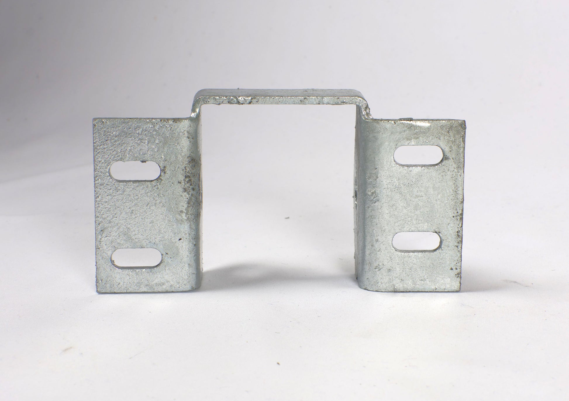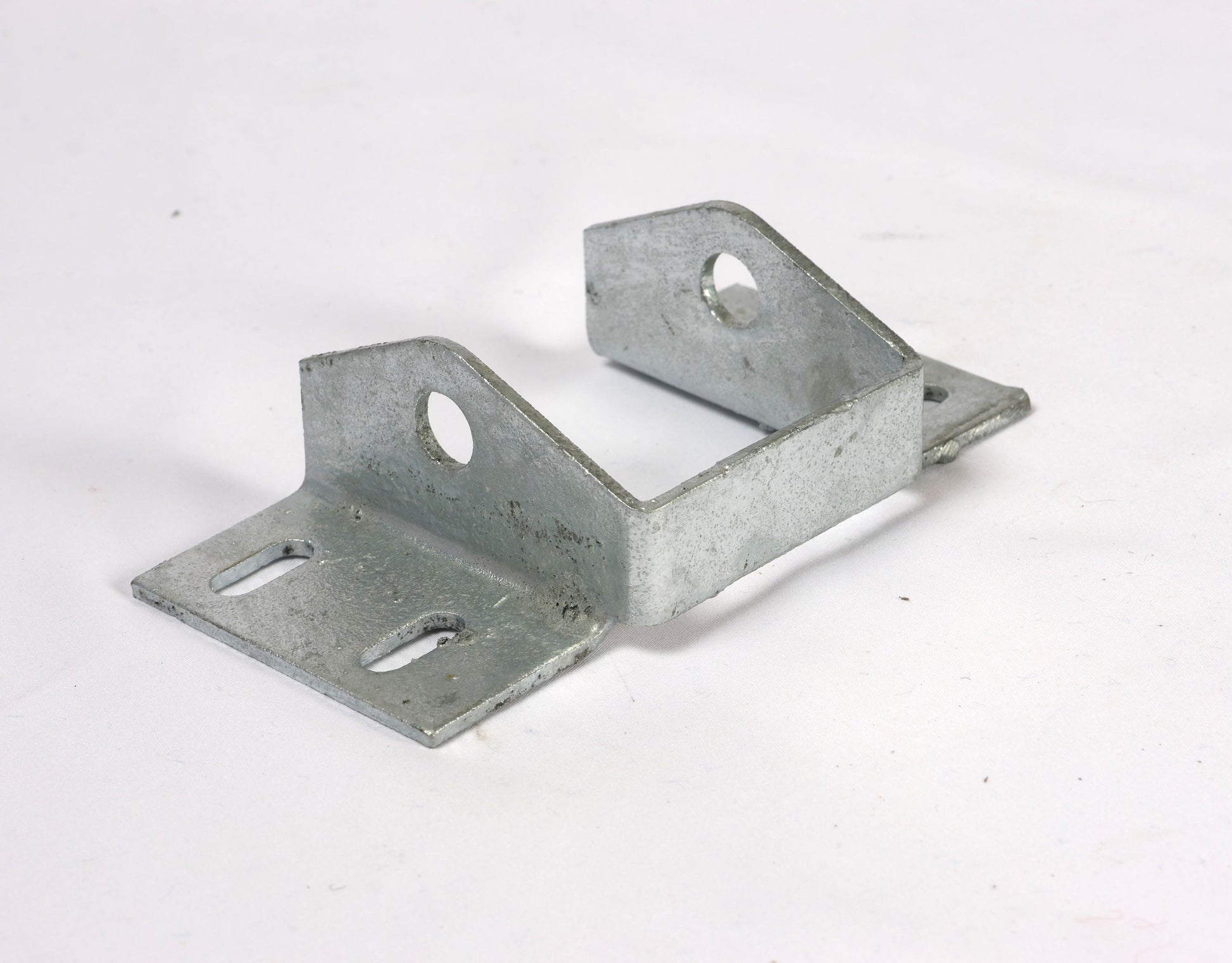 EZ Loader Boat Trailer bunk mounting bracket, top hat style. This galvanized bunk support mounting bracket is mounted to the inside to the EZ Loader Upright Support Bracket from the cross-member. Nicknamed (Hat or Top Hat). Four lag screws (not included) hold the bunk to the top hat. Made by OEM EZ Loader in the USA from 10ga galvanized steel. Overall dimensions 3.38" x 6.05".